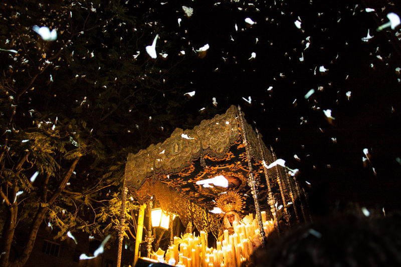 Seville is the most famous and the intensity and connection they have with their Virgin and the Christ is very palpable and breath taking. The "cofradías" (religious brotherhoods), walk through the Seville streets to the Cathedral, the precious and heavy (they can weigh over a metric tonne) sculptures, carried by the "costaleros" (bearers which can be up to fifty four men, all inside the structure of the "paso") on a journey that can take up to fourteen hours on the night of Holy Thursday, until the Holy Friday to venerate their Virgin and the Christ. The way these men carry the images is so distinctive that it looks like they are alive and the whole procession is floating. "Saeta" singers are along the way, in the balconies, singing out their soul for their Virgin and the solemn Christ, interrupted only by shouts of "guapa!!! And tears from the devotes in a heart breaking passion shared amongst all the generations.